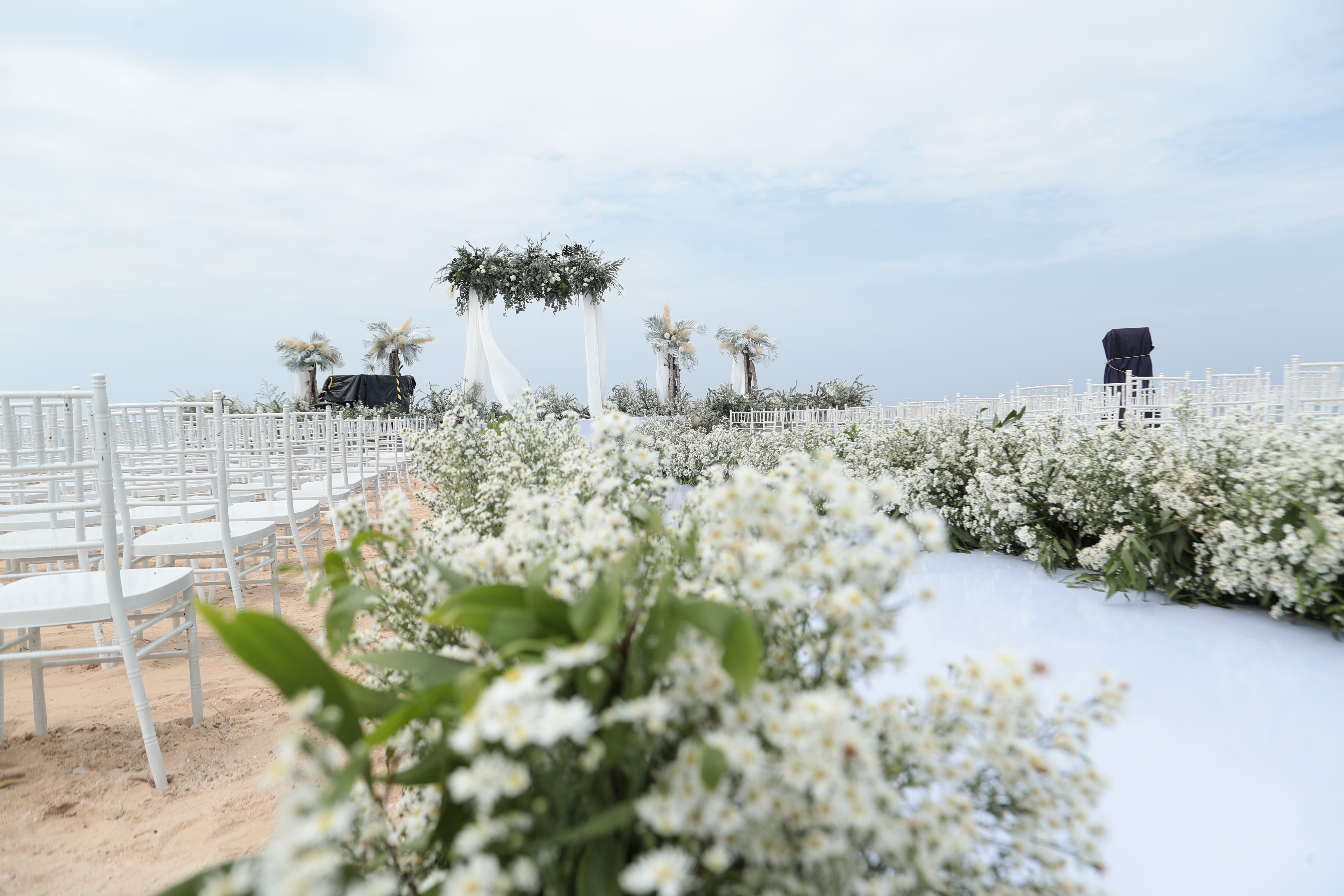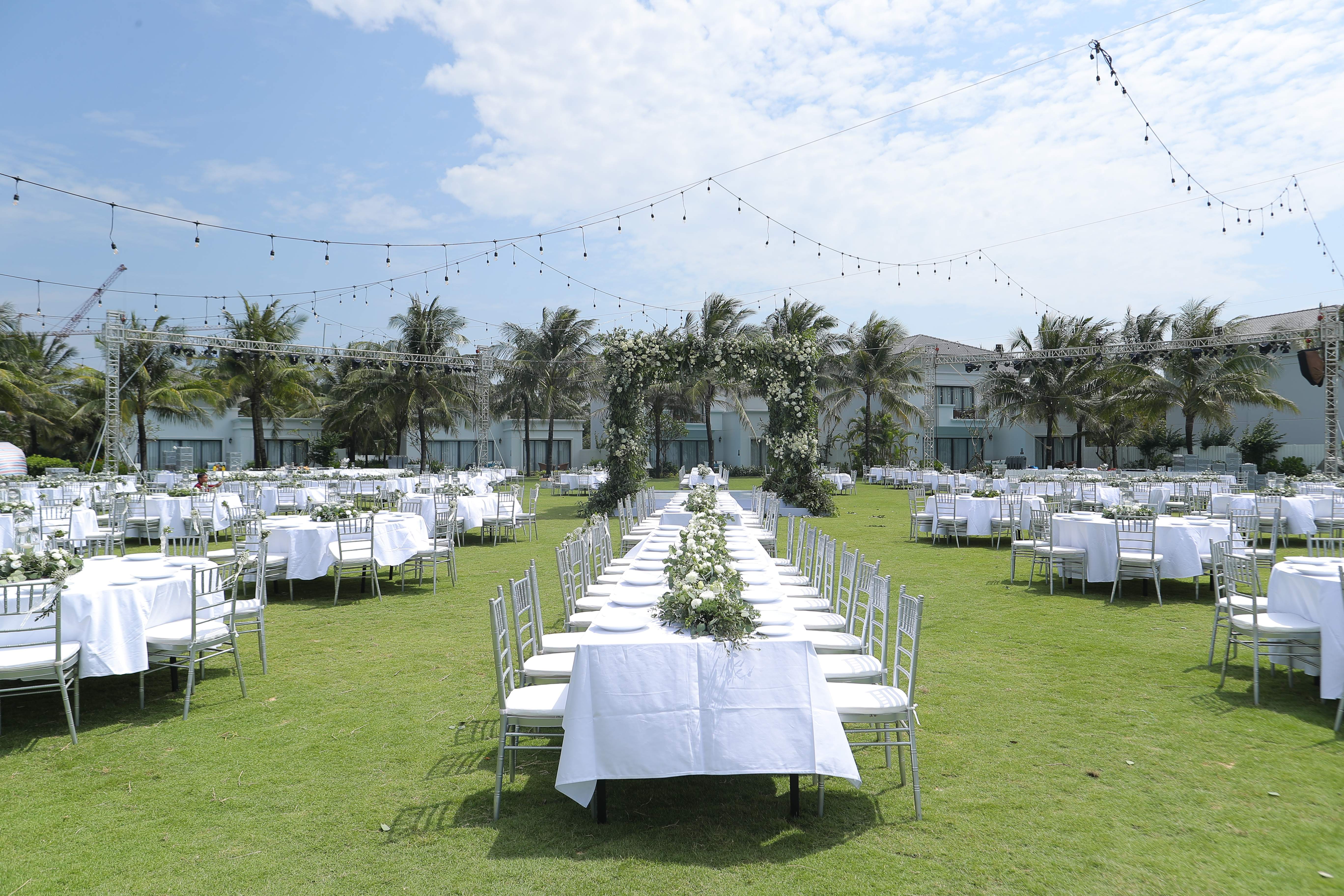 Ngoài dàn nhân sự “khủng” để trang hoàng cho hôn lễ, 6 xe tải 10 tấn chuyên dụng để chở thiết bị âm thanh ánh sáng bảo đảm mọi thứ được chỉn chu nhất. Dàn hoa baby trang trí nhập ngoại lên đến số lượng 2 tấn. Với bãi biển diện tích hơn 8 000 mét vuông được trang hoàng đẹp mắt, hai nhân vật chính cùng dàn khách mời hứa hẹn có một đêm tiệc đáng nhớ.