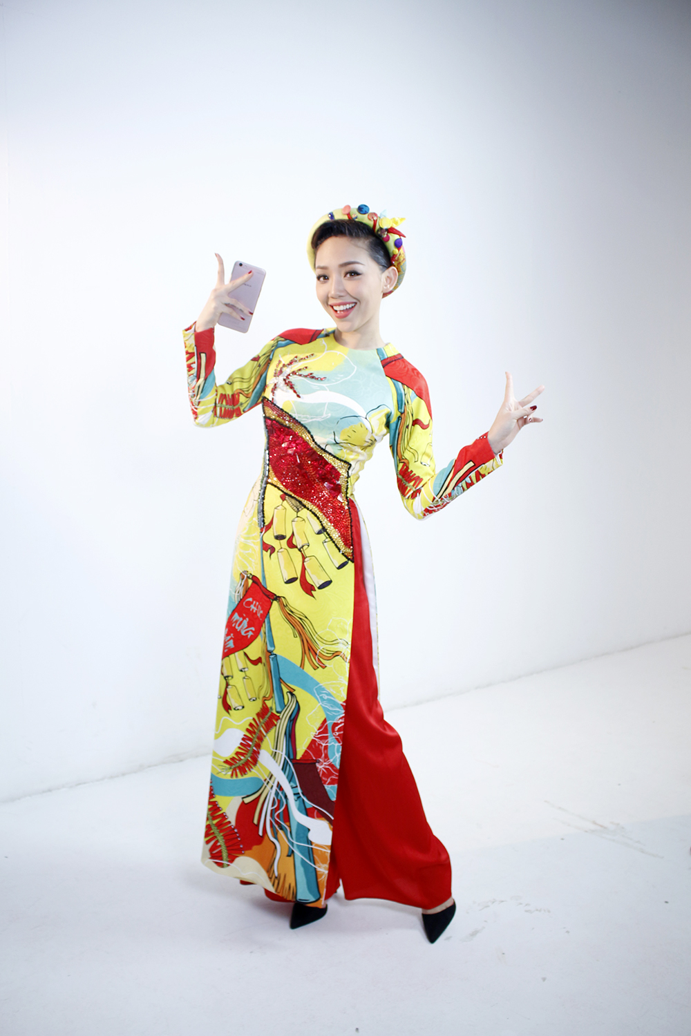 Tham gia vào bộ ảnh Tết “Giữ Tết truyền thống, sống Tết hiện đại” với hình ảnh đại diện là cây nêu ngày Tết, Tóc Tiên chia sẻ: “Tiên nghĩ là cái hình ảnh cây nêu là hình ảnh đã gắn liền với những câu chuyện mà chúng ta được học ngày xưa, cấp 1 thì mọi người đã biết, đã nghe những cái truyền thuyết về cây nêu rồi.