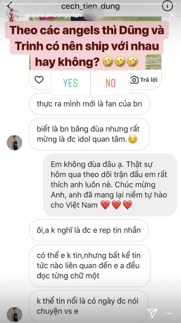 Nhờ hiệu ứng truyền thông của U23, không chỉ hoạt động bóng đá mà đời tư các cầu thủ cũng được dư luận hết sức quan tâm. Chính vì vậy, khi loạt ảnh chụp màn hình tin nhắn từ tài khoản thủ môn Bùi Tiến Dũng “thả thính” nhiều mỹ nhân V-biz như Đỗ Mỹ Linh, Angela Phương Trinh, cư dân mạng đã một phen xôn xao bàn tán suốt thời gian dài.