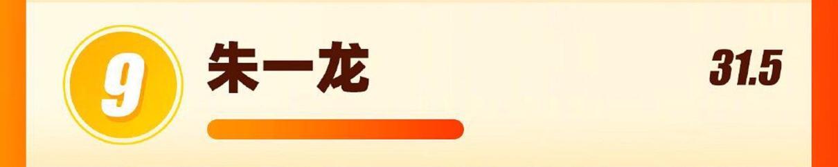 Với sức nóng 31,5 điểm, nam thần Chu Nhất Long giữ vị trí thứ 9. Nổi tiếng nhờ vào bộ phim đam mỹ Trấn Hồn cùng với Bạch Vũ, nhưng tên tuổi Chu Nhất Long ngày càng bứt phá và thu hút vô cùng fan hâm mộ với nhân cách và thực lực diễn xuất của mình. Dù bộ phim đã kết thúc khá lâu nhưng cái tên Chu Nhất Long chưa bao ngờ ngừng hot.
