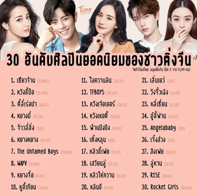 Top 10 minh tinh Trung Quốc được khán giả Thái Lan yêu thích nhất: