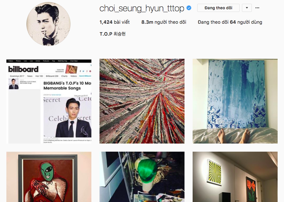 Dù vướng phải lùm xùm sử dụng chất kích thích trong năm 2017 nhưng dường như scandal không mấy ảnh hưởng đến sức hút của T.O.P. Anh vẫn xếp thứ 7 trong bảng xếp hạng với 8,3 triệu người theo dõi trên Instagram.