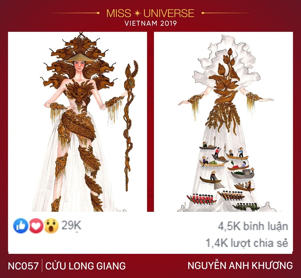 Dẫu có thiết kế nào được chọn cũng cho thấy Hoàng Thùy may mắn khi được đông đảo fan nhiệt tình góp ý cùng chọn National Costume.