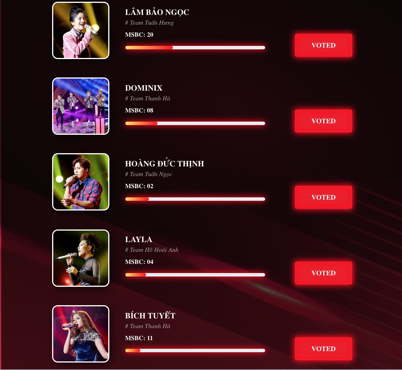 DOMINIX xếp thứ 2 với lượt vote nhiều không kém, đây là thành quả xứng đáng cho nhóm thí sinh luôn không ngừng nỗ lực và cố gắng để chứng minh sự tiến bộ của từng thành viên. Hiện tại các fan đang dốc hết sức để có thể đuổi kịp lượt vote của Lâm Bảo Ngọc.
