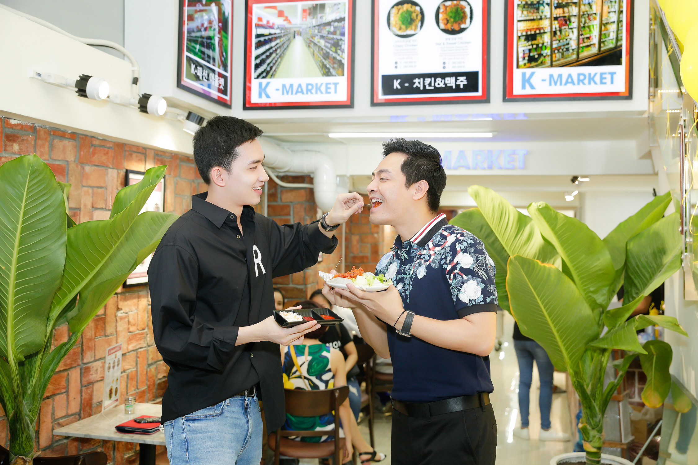 Khoảnh khắc “tình tứ” gây sốt của anh và nam thần Võ Cảnh khi cùng thưởng thức món ăn.