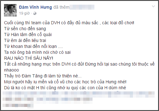 Chia sẻ mới nhất của Đàm Vĩnh Hưng trên trang cá nhân của mình.