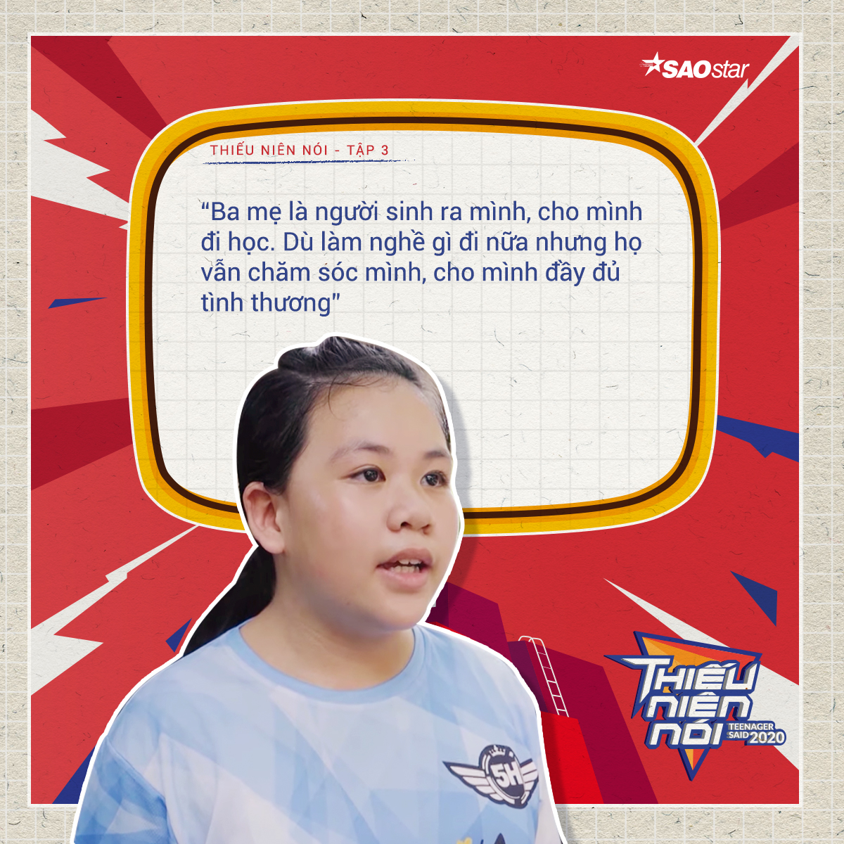 Cô bé tuy mới học lớp 10 nhưng đã hiểu thấu: “Cha mẹ là người cực khổ nuôi mình. Dù đôi lúc có cãi vã nhưng sau cùng ba mẹ vẫn là người luôn tha thứ chấp nhận cái sai của mình”.