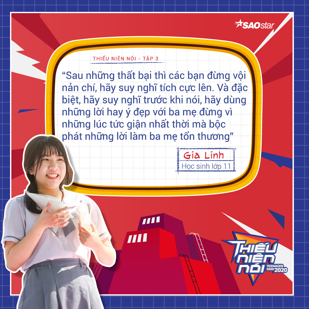 Mỗi tập phát sóng Thiếu niên nói 2020 đều để lại trong lòng khán giả, đặc biệt là phụ huynh và các em nhỏ những câu nói ý nghĩa. Đó là giá trị thiết thực được rút kết từ câu chuyện nhiều cảm xúc của lứa tuổi học sinh. Mỗi em mang đến một thông điệp tạo thành chuỗi các cung bậc cảm xúc khác nhau từ hồi hợp, lo lắng đến vui khôn tả, có khi còn lấy đi những giọt nước mắt.
