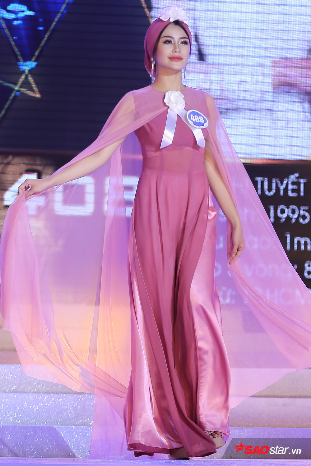 Top 5: Võ Ngọc Lụa (373), Nguyễn Thị Diệu Thùy (411), Nguyễn Thị Huyền Trang (421), Lê Âu Ngân Anh (401), Đặng Thanh Ngân (390) trong vòng thi ứng xử.