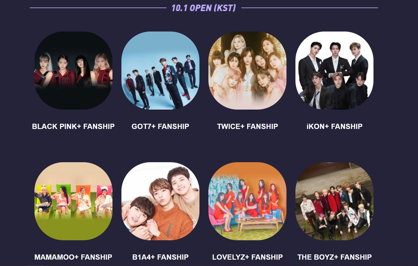 Ngày 1/10, Fanship của các nghệ sĩ Kpop sẽ được mở để trải nghiệm gồm: GOT7, IKON, Black Pink, Twice, Mamamoo, B1A4, The Boyz, Lovelyz. Ngày 2/10, sẽ là Infinite, BTOB, Apink, Winner, MonstaX, Seventeen.
