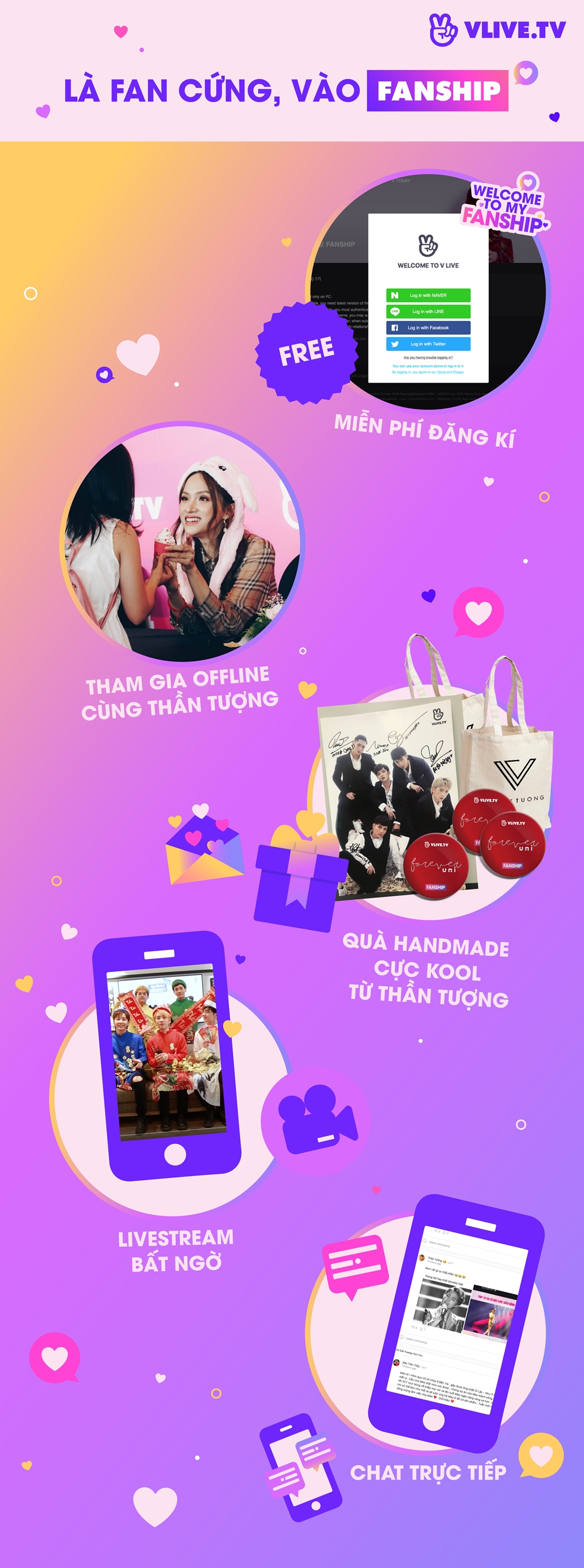 Chi tiết tham khảo tại: https://www.vlive.tv/promotion/fanship và page VLIVE để được hướng dẫn.