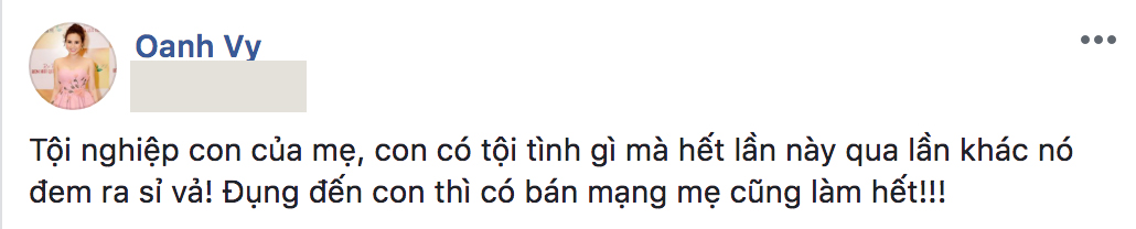 Đáp trả lại đàn chị với những tình tiết mới vô cùng bất ngờ, Vy Oanh tiếp tục còn tố thêm cả nam MC Trấn Thành bấy lâu nay luôn tìm cách phối hợp với đàn chị là Hoa hậu kia hãm hại cô. Cô cho biết do con mình bị đem ra dựng chuyện để bêu rếu nên cô sẽ khui tất cả những gì mà mình biết về đàn chị.