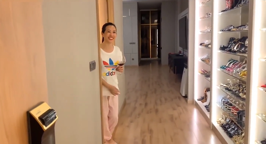 Tự nhận mình cũng có sở thích sưu tập giày nhưng trước chiếc tủ đồ sộ của Hoa hậu Thu Hoài cũng khiến anh phải choáng ngợp. Hầu như cô sở hữu đầy đủ tất cả các thương hiệu nổi tiếng thế giới, thậm chí có những đôi với giá trị lên đến hàng ngàn đô nhưng chỉ mua vì thích chứ không mang.