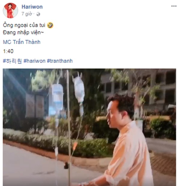 Bà xã Hari Won cũng nhanh chóng cập nhật tình hình của chồng với dòng chú thích hóm hỉnh: “Ông ngoại của tui đang nhập viện”.