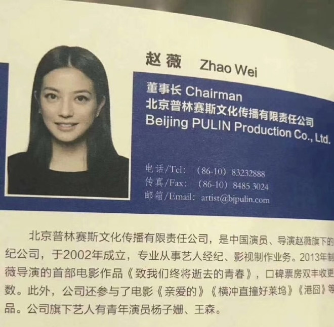 Công ty quản lý nghệ sĩ Pulin Production thành lập từ năm 2002 và tạo dựng được uy tín trong ngành giải trí Trung Quốc. Ngoài việc hỗ trợ, điều hành hoạt động của các nghệ sĩ trực thuộc, công ty còn tham gia sản xuất phim, 2 bộ phim nổi tiếng nhất là Người yêu dấu 2014 và Lạc lối ở Hong Kong 2015.