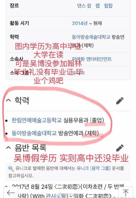 Trong khi đó, trên trang Baidu ghi Vương Nhất Bác đã tốt nghiệp cấp 3 trường Hanlim ở Hàn Quốc và đang học đại học. Thế nhưng, trong lễ tốt nghiệp ngày hôm đó lại không có hình Vương Nhất Bác. Vì vậy, cư dân mạng liên kết lại và nghi ngờ Vương Nhất Bác trình độ học vấn mới chỉ ở mức tiểu học mà thôi.