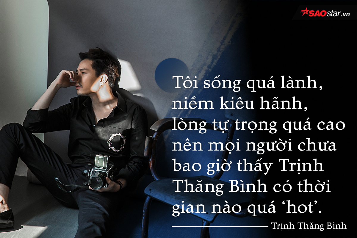 - Thật sự nếu tôi muốn dùng scandal để nổi tiếng thì có rất nhiều cơ hội. Nếu tính cách chấp nhận đánh đổi để nổi tiếng hơn thì chắc vị trí của Trịnh Thăng Bình bây giờ đã khác nhiều. Một trong những điều người ta hay nói là chưa bao giờ thấy Trịnh Thăng Bình có khoảng thời gian nào quá hot, chưa được ai nhắc đến nhiều. Đúng! Vì sao? Vì tôi sống quá lành, chưa có một sự kiện nào để người ta nhắc đến mình và rõ ràng nếu muốn người ta biết đến nhiều thì phải tạo scandal.