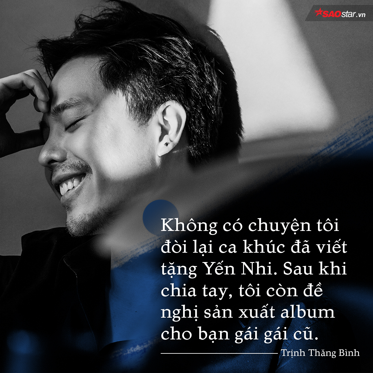 - Chưa bao giờ có chuyện tôi viết ca khúc cho người đó mà đi đòi lại cả. Ngay cả những người mình làm việc thôi, những người không thân thiết, đặt ca khúc của mình rồi, mình còn chưa lấy lại nói chi người từng có một mối quan hệ thân thiết với bản thân mình.