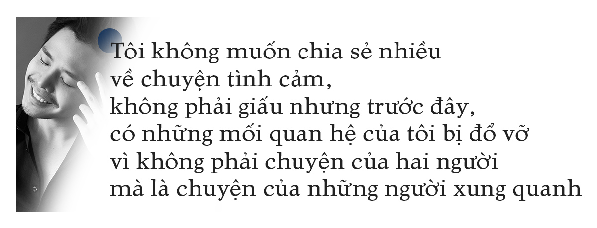 Tôi không muốn bản thân đã quá bận rộn với công việc mà phải suy nghĩ thêm những việc như vậy. Tôi muốn giữ riêng cho mình, cho đối phương để mối quan hệ đó được tốt hơn. Thậm chí tôi có suy nghĩ đến ngày nào đó lập gia đình cũng không cần rình rang, những khoảnh khắc cá nhận đó phải thật sự riêng tư.