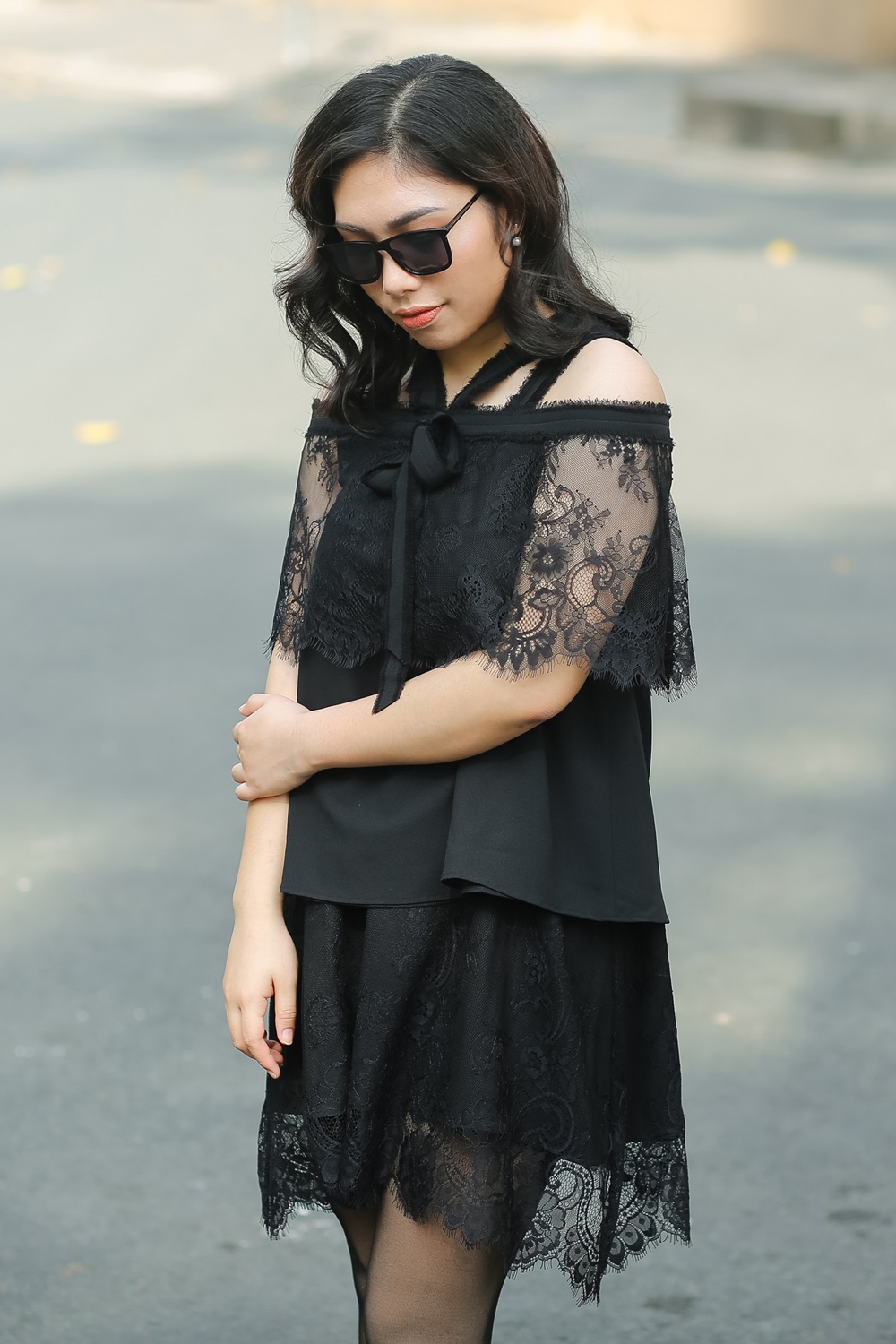 Cô nàng tự tin tạo dáng chụp hình giữa phố.