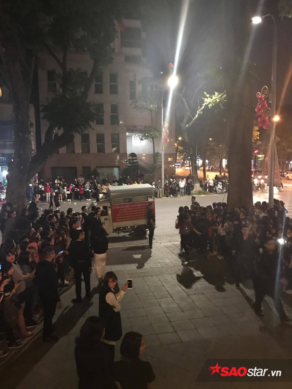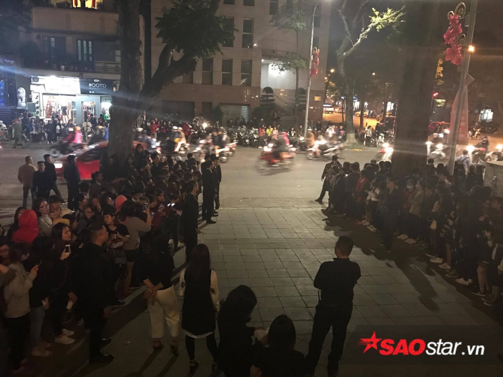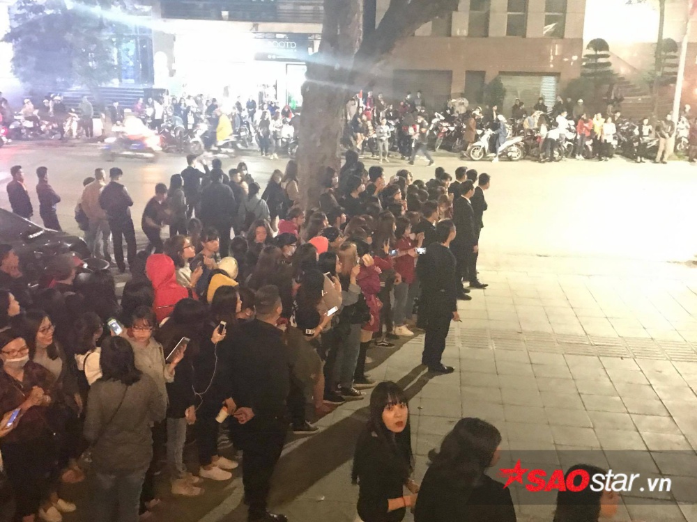 Dù đã gần 2 giờ sáng nhưng phía bên ngoài vẫn còn rất đông người hâm mộ.