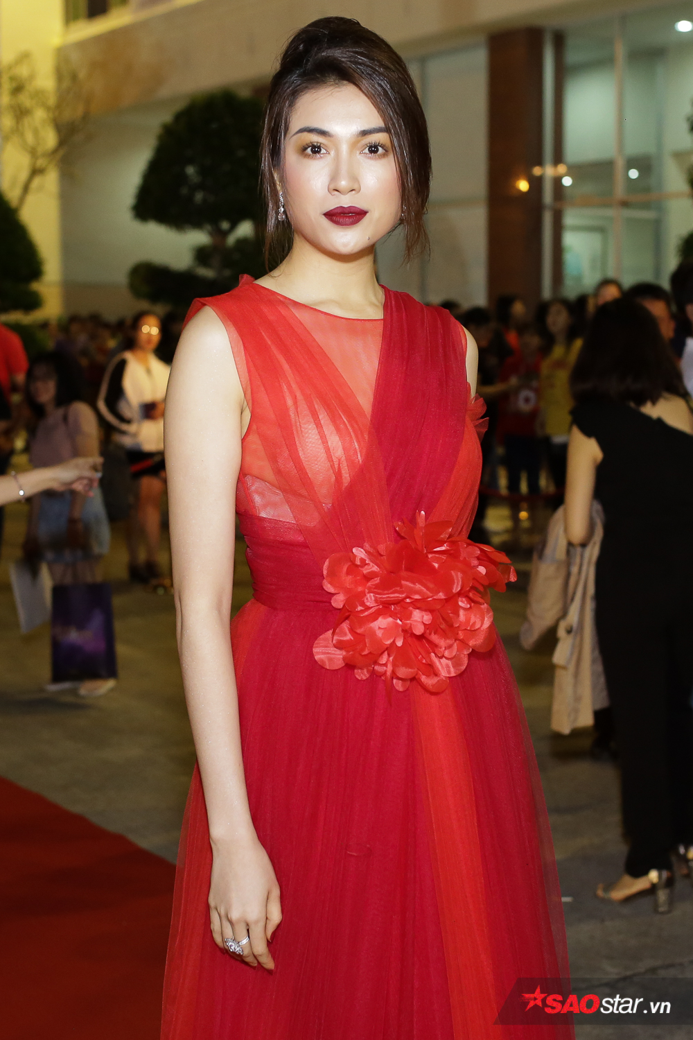Á hậu Lệ Hằng diện váy đỏ quyến rũ.