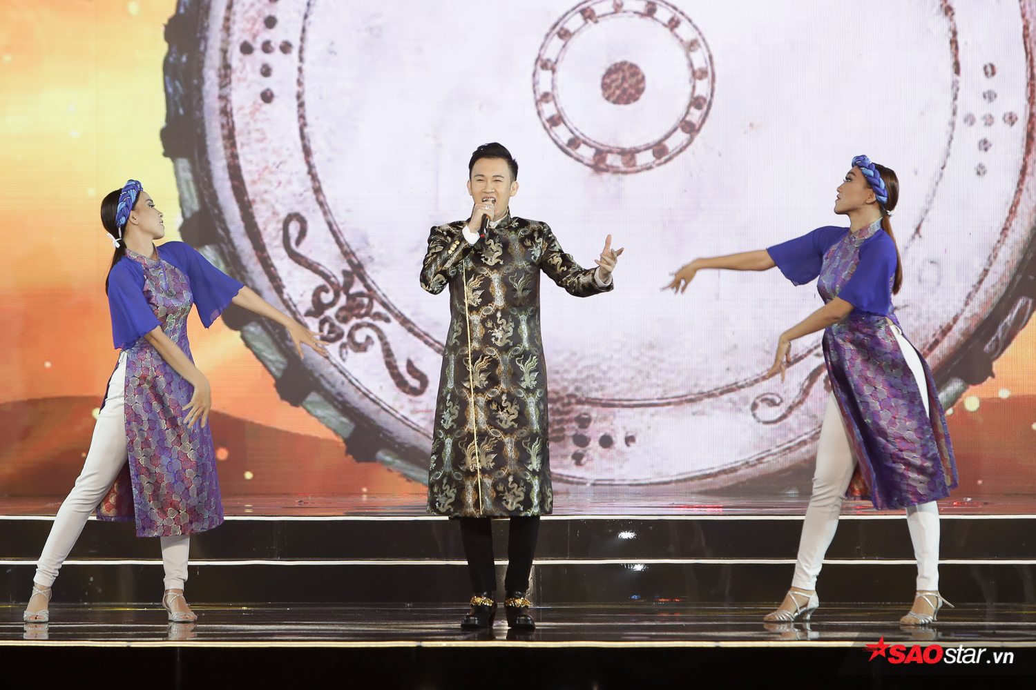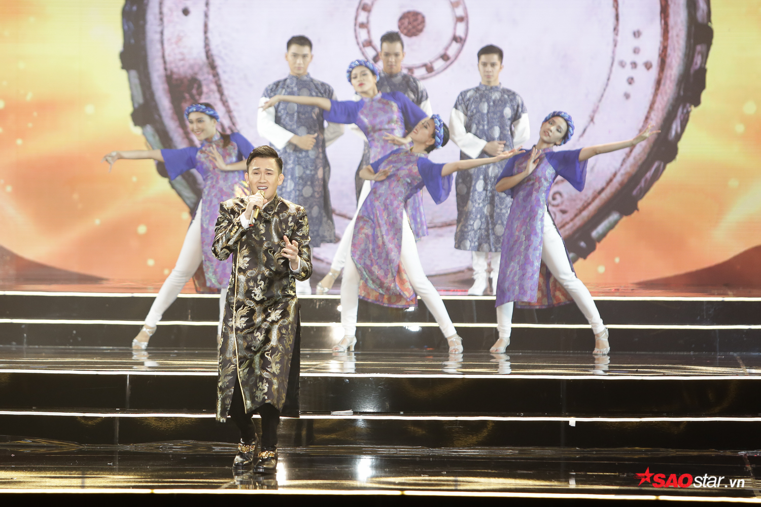 21h34: Hồ Trung Dũng thể hiện tiết mục Lady of diamond. Top 10 trình diễn trang phục dạ hội