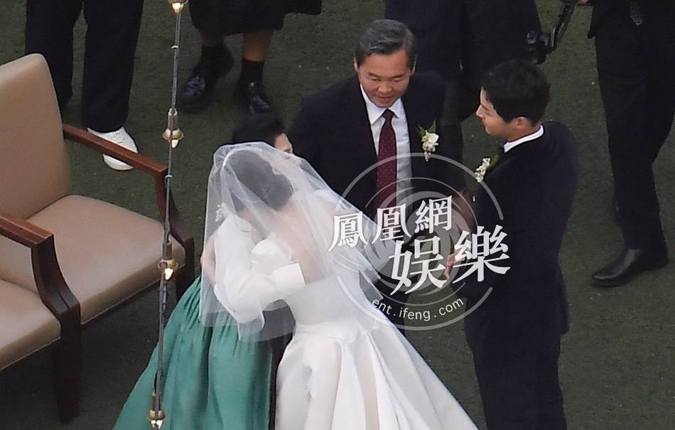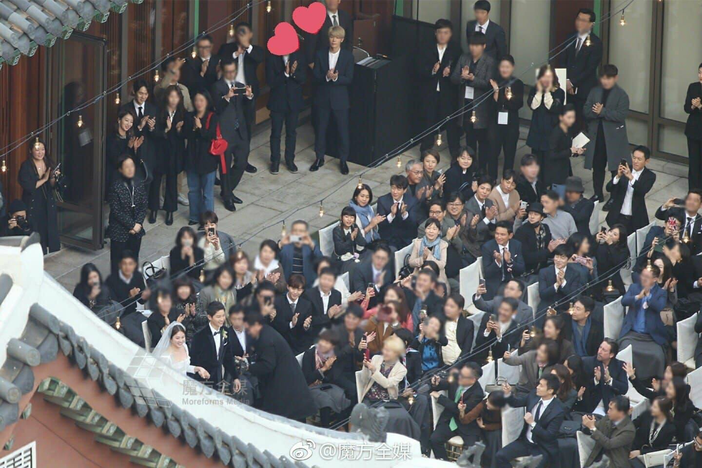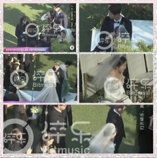 11h: Loạt ảnh hiếm hoi của Song Hye Kyo bước ra từ phòng cô dâu tiến đến lễ đường hôn lễ được cánh phóng viên xứ Trung chụp lại vào lúc 8h30. Những hình ảnh trên ngay lập tức nhận được sự quan tâm, chú ý lớn từ người hâm mộ bởi đám cưới của cặp đôi vàng xứ sở kim chi được bảo mật thông tin, không cho phóng viên vào tác nghiệp.