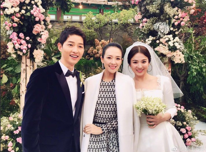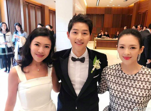 14h20: Là khách mời đến sớm nhất hôn lễ, Chương Tử Di đã kịp chụp ảnh cùng Song Joong Ki.