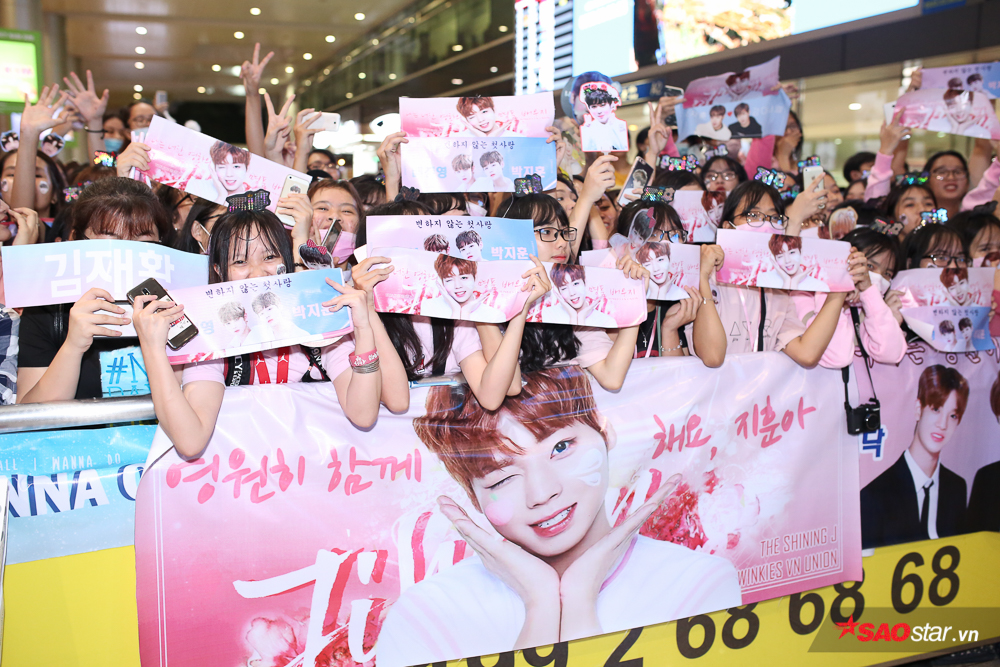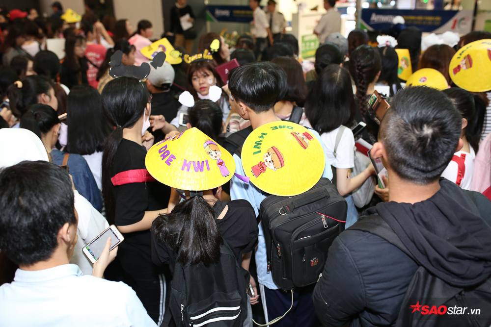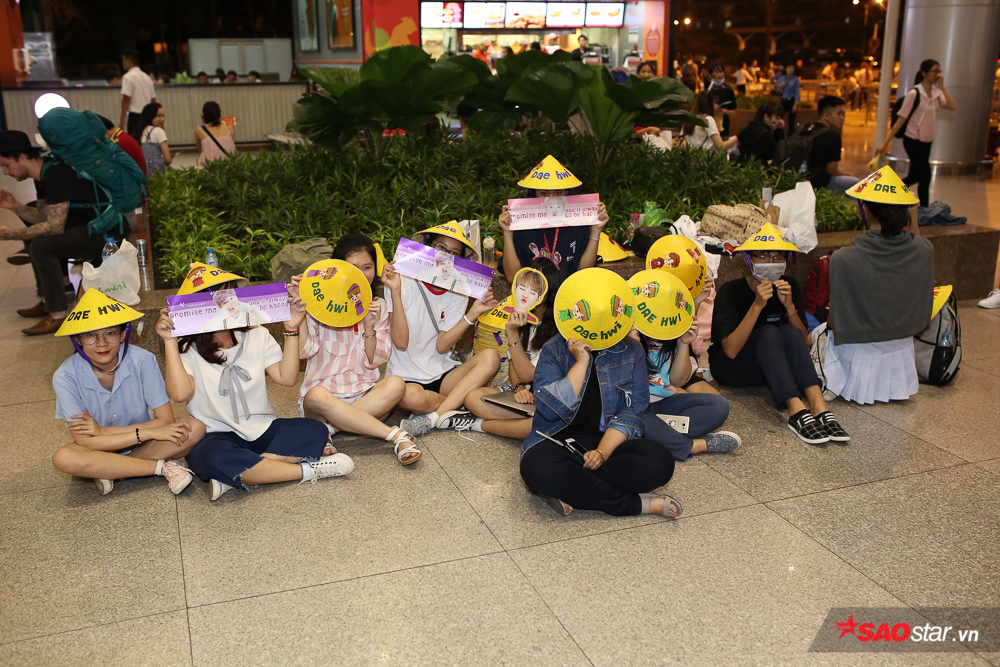 Trước “giờ G”, không khí ở sân bay Tân Sơn Nhất hết sức náo nhiệt với sự góp mặt của đông đảo người hâm mộ Wanna One. Hầu như fan đều in poster Wanna One, thậm chí có fansite còn chuẩn bị project nón lá handmade công phu chào đón thành viên Lee Dae Hwi. Dù cực kỳ phấn khích nhưng các Wannable vẫn xếp hàng trật tự, nghiêm chỉnh, cho thấy sự văn minh trong văn hoá fandom.