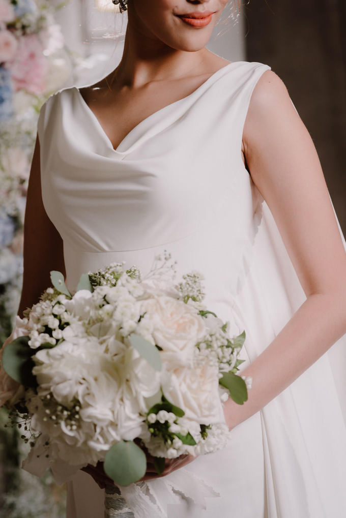 Như bật mí trước đó từ nhà mốt phụ trách trang phục, chiếc váy cưới này sẽ “đem đến sự bất ngờ” và được “đo ni đóng giày” cho Lan Khuê. Trước cô, có lẽ chưa có nghệ sĩ Việt nào chọn phong cách váy cưới gợi cảm như vậy.