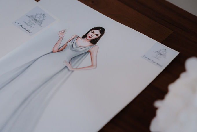 Không những thế, một trong những ý tưởng dành cho chiếc váy đặc biệt này chính là mẫu váy của Nam Phương Hoàng hậu. Đội ngũ thiết kế chia sẻ rằng “Có dịp cộng tác trong 1 vài dự án, điều làm chúng tôi ngưỡng mộ nhất ở Lan Khuê là sự thông minh, tinh tế và đầy lòng nhân ái. Và đến khi có dịp thiết kế váy cưới cho Lan Khuê, thì sự tương đồng giữa Lan Khuê và Nam Phương hoàng hậu lại trở thành nguồn cảm hứng cho thiết kế lên mẫu váy vô cùng thanh lịch và sang trọng cho ngày trọng đại của đời nàng”.