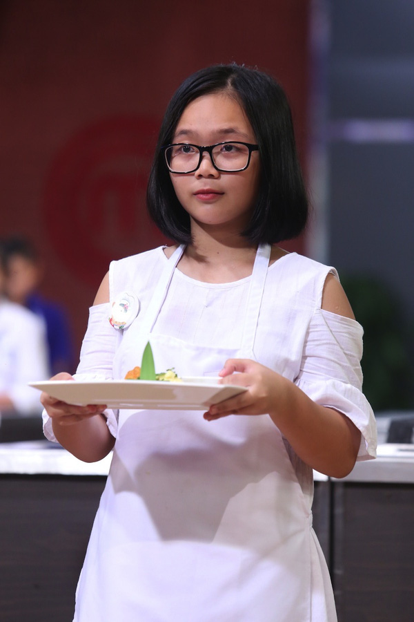 Minh Anh trong chương trình Vua đầu bếp nhí.