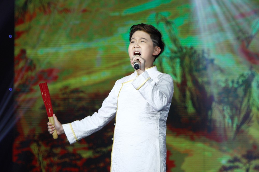 Phi Long thời “chưa dậy thì” hát Thư Pháp với giọng hát cao vút.