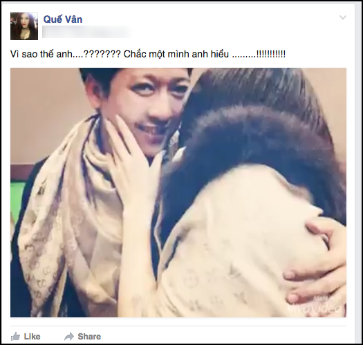 Vào ngày 14/2/2016, showbiz Việt “chấn động” khi Quế Vân viết tâm thư khá dài trên trang cá nhân với nội dung tố Trường Giang là người vô tình, nhiều lần làm tổn thương tình cảm của cô.