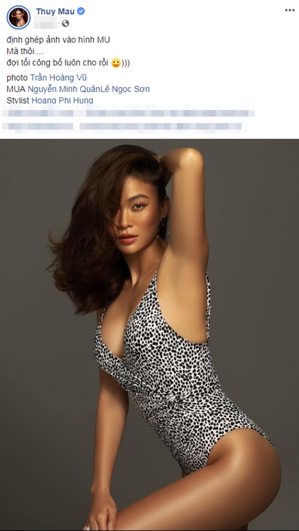 Mâu Thủy có vẻ cũng cùng ý tưởng với Xuân Lan về việc ghép ảnh vào poster nhưng cuối cùng cô nàng quyết định bỏ cuộc. Nàng Á hậu khoe ảnh body chuẩn khiến fan xao xuyến cùng dòng trạng thái “nửa đùa nửa thật”: “Định ghép ảnh vào hình Miss Universe mà thôi, đợi tối công bố luôn cho rồi“.