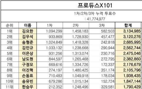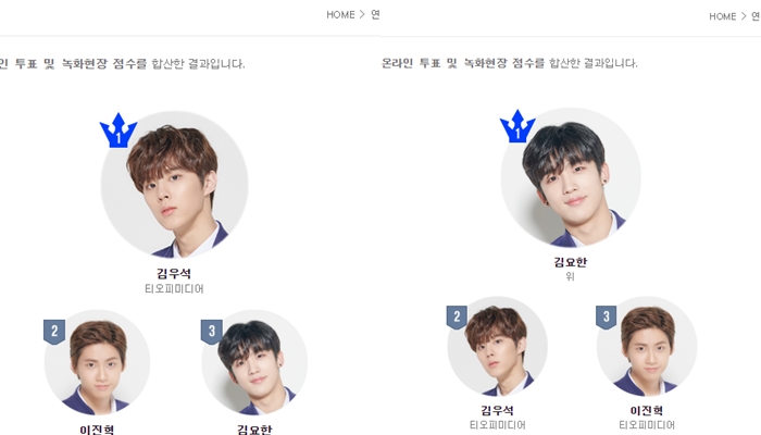 Với điều này, cư dân mạng đang dự đoán rằng 1 trong 2 gương mặt thực tập sinh trên sẽ trở thành trung tâm của nhóm vì cả 2 đều nhận được số phiếu bầu cao nhất cho đến bây giờ. Nếu Kim Yohan nhận được 3.134.985 phiếu bầu thì Kim Woo Seok cũng không kém cạnh khi nhận được 3.120.276 phiếu bầu.