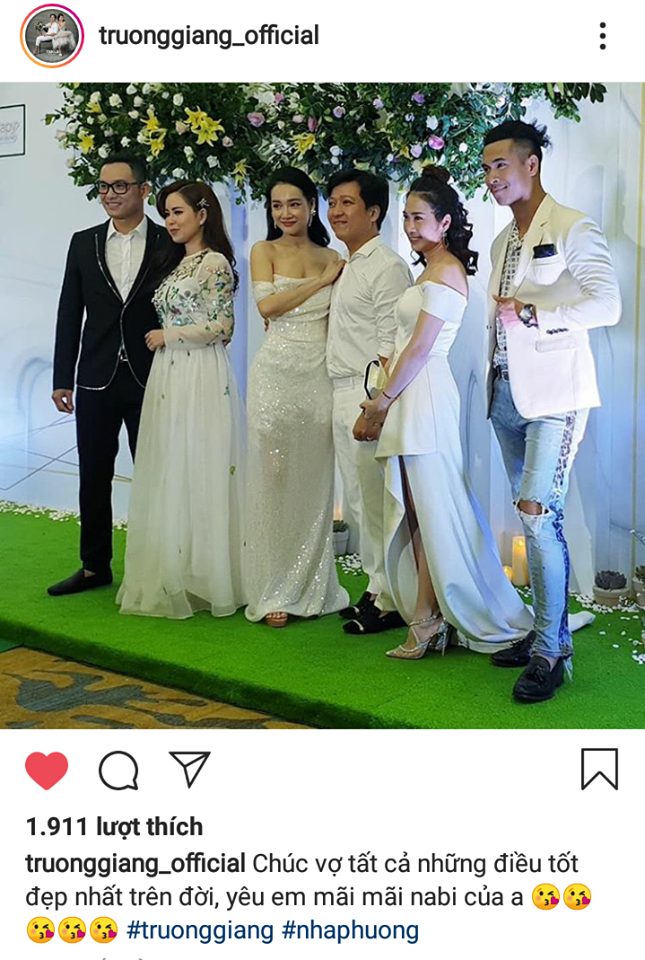 Mới đây, trên trang cá nhân của mình, anh cũng vừa gửi đến vợ mình một lời chúc mừng đầy yêu thương và ngọt ngào trong ngày sinh nhật. Trong bức hình được đăng trên trang cá nhân, có thể thấy Trường Giang khá lịch lãm trong chiếc áo sơ mi và chiếc quần âu màu trắng cùng màu với chiếc váy của vợ, trên gương mặt là nụ cười hạnh phúc. Kèm theo bức ảnh anh viết: “Chúc vợ tất cả những điều tốt đẹp nhất trên đời , yêu em mãi mãi Nabi của anh”.