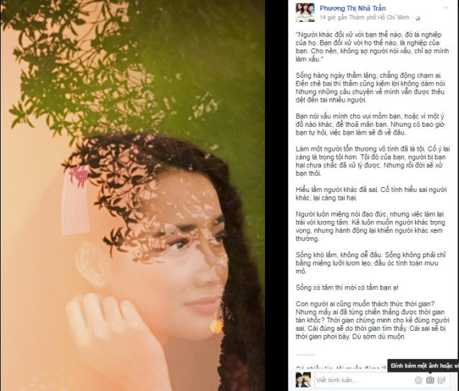 Những dòng chia sẻ đầy tâm trạng của Nhã Phương trên trang cá nhân.