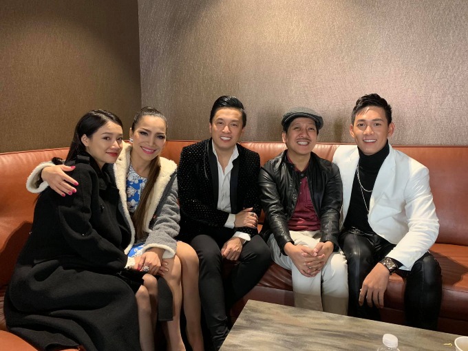 Bức ảnh được chụp cả hai vợ chồng sánh vai nhau trong buổi tiệc sinh nhật của Nhã Phương. Trường Giang ngọt ngào ôm eo bà xã trong bữa tiệc.