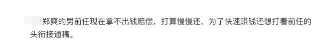 Mới đây, một nguồn tin lan truyền trên Weib tiết lộ cho biết hiện tại Trương Hằng không có khả năng đền bù tiền bồi thường cho Trịnh Sảng. Anh ta dự định sẽ từ từ trả, vì để nhanh chóng kiếm tiền còn lấy thân phận “bạn trai cũ” để tạo các mối quan hệ, bán thông tin cho giới giải trí để có thêm “chút đỉnh”.