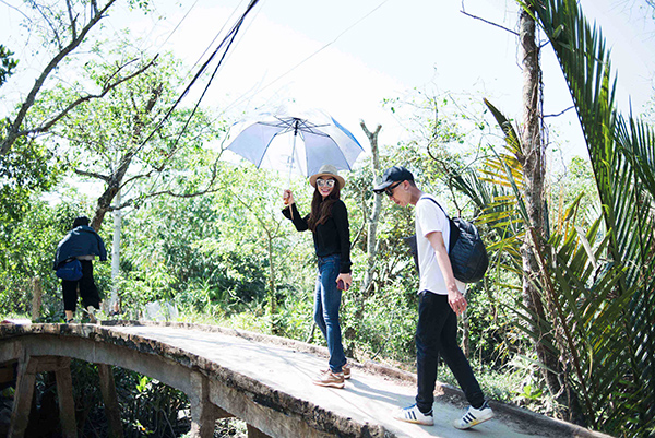 Phải di chuyển bằng đò, di chuyển trên đường đất và cầu tạm một đoạn đường khá xa, song Trương Ngọc Ánh cùng các cộng sự không quản ngại vất vả đến tận khu vực có nhiều người dân nghèo đang sinh sống. Khi đến được địa điểm dự kiến, nữ diễn viên Hương Ga đã dành thời gian thăm hỏi và trao quà cho các vị sư trì ngôi chùa nhỏ tại xã Tân Phong.