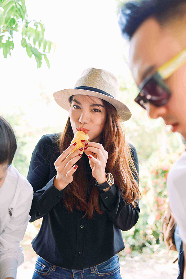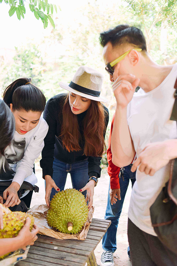 Trương Ngọc Ánh ăn sầu riêng do bà con tặng.