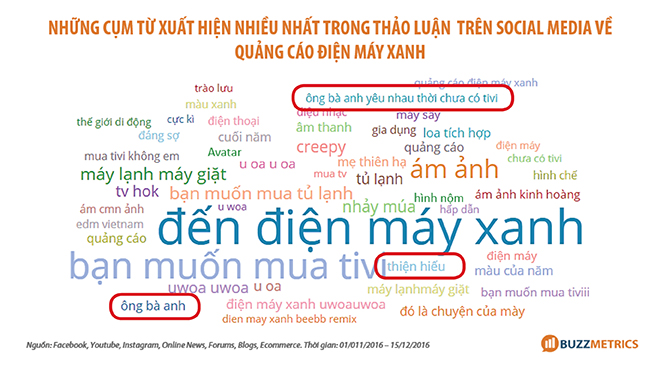 Câu hát “Ông bà anh yêu nhau từ thời chưa có ti vi”, “Thiện Hiếu”, “Ông bà anh” đã trở thành một trong những cụm từ xuất hiện nhiều nhất trên mạng xã hội khi nói về quảng cáo Điện Máy Xanh.