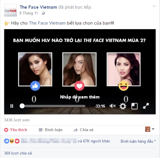 The Face dùng tính năng mới của facebook để khảo sát nhu cầu của khán giả nhằm đem đến một mùa mới hấp dẫn hơn.
