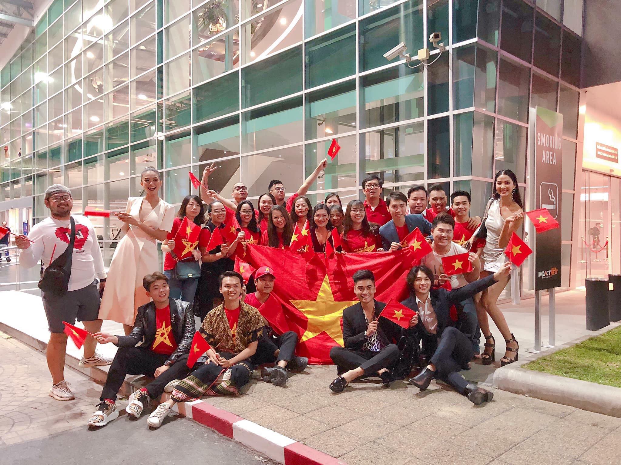 Mâu Thủy - Hoàng Thùy cùng nhau đến đất Thái để cổ vũ cho đại diện Việt Nam.