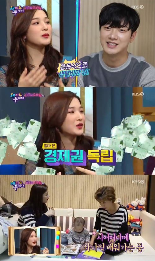 Tại trường quay cựu thành viên nhóm nhạc nữ LABOUM còn tiết lộ, trước đây có quãng thời gian mẹ chồng cô thường lo tất cả các khoản tài chính trong gia đình và Yulhee chưa bao giờ phải chạm tay vào chuyện đó: “Trước đây mẹ chồng là người quản lý tiền bạc, bởi vì tôi không đủ tự tin. Nhưng Minhwan là người đầu tiên nói rằng: “Yulhee à, em hãy quản lý tiền đi”, thế là tôi bắt đầu chịu trách nhiệm về các vấn đề tài chính trong nhà. Tôi học hỏi được rất nhiều thứ từ mẹ chồng khi đi cùng bà đến ngân hàng. Trước khi kết hôn, Minhwan đã tiêu khoảng 5 triệu won tiền tiêu vặt mỗi tháng, nhưng bây giờ anh ấy chỉ tiêu khoảng 500.000 won mỗi tháng. Tôi cũng trở nên giản dị hơn từ khi kết hôn”.