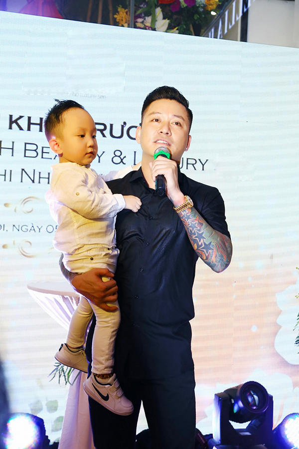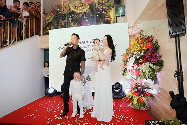 Đặc biệt, Tuấn Hưng còn đưa hai thiên thần đáng yêu Su Hào và Son đến chúc mừng mẹ Thu Hương khai trương. Nếu con trai đầu lòng Su Hào thường xuyên đi sự kiện cùng bố mẹ thì đây là lần đầu tiên bé Son xuất hiện trước công chúng. Mới 7 tháng tuổi nhưng “tiểu công chúa” nhà Tuấn Hưng vô cùng bụ bẫm và đáng yêu. Cô nhóc thừa hưởng nhiều nét của mẹ và bà ngoại.