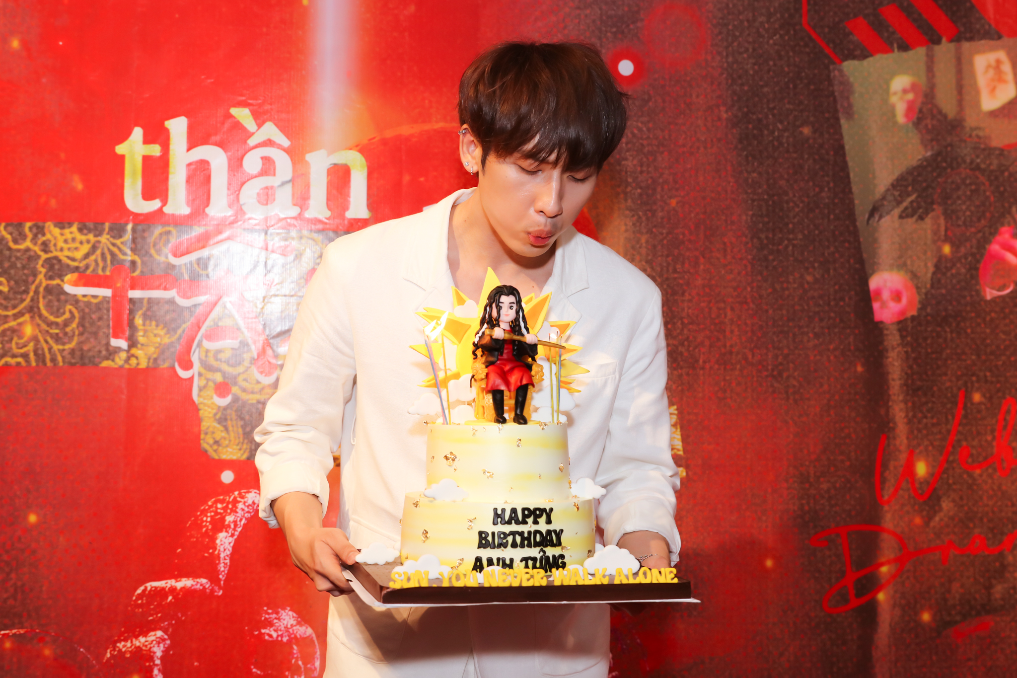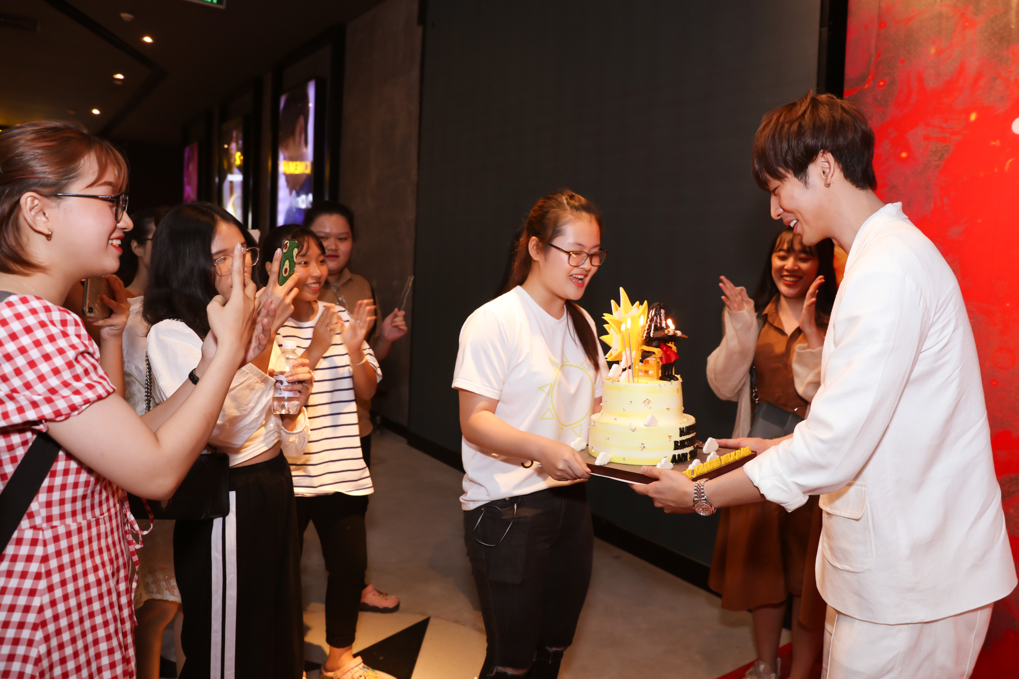 Kết thúc buổi họp báo, nam diễn viên không khỏi bất ngờ khi được fanclub của mình tổ chức mừng sinh nhật. Đây là tiết mục được fan âm thầm chuẩn bị bí mật - với mong muốn mang đến bất ngờ cho thần tượng của mình. Tuấn Trần sau đó đã hạnh phúc nhận lấy chiếc bánh kem từ một fan. Anh càng tỏ ra vui mừng khi chiếc bánh được các fan tinh ý thiết kế từ hình tượng vị vua mình từng thể hiện trong MV ra mắt cách đây không lâu: An tâm đi đầu thai.