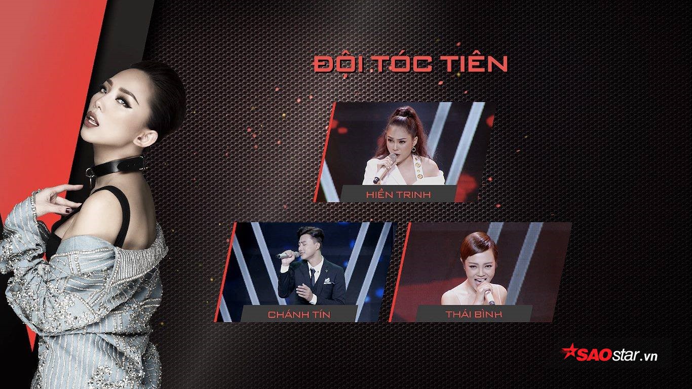 Trải qua các vòng Giấu mặt, Đối đầu và Đo ván, cuối cùng Team Tóc Tiên cũng bước vào vòng liveshow với ba chiến binh mạnh nhất đội hình. Ba cái tên đã vượt qua hàng loạt thử thách để chính thức góp mặt vào vòng liveshow gồm Hiền Trinh, Chánh Tín và Thái Bình.